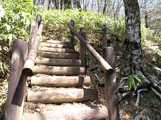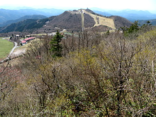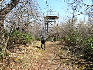| 山行記 | ●前日の新聞に、萩太郎山に新しい展望台が完成したという記事が載っていたので、それでは一度行ってみようと、茶臼山高原へ出かけることにした。豊川市内のファミレスで朝食を採った後、茶臼山高原第1駐車場へ向かった。 ●この日は折りしも奥三河パワートレイルの開催日で、それもこの茶臼山高原がスタート地点なので混雑を心配したが、既にスタートのセレモニーは終わったようで、拍子抜けする程静かで、片付けもほとんど終わっていた。 ●いつものように第1駐車場に車を停めると、早速総合案内所横の西登山口入口からスキー場のゲレンデを登って、レストハウスの「てんくう」がある第2駐車場まで行く。 ●第2駐車場奥にある発電用風車のある所が西登山口で、そこから緩やかな登山道が始まる。しばらくは草原を登るが、この辺りは花が咲くのはこれからなのか、植栽されたコブシの花がようやく咲き始めたぐらいだ。 ●草原を登ると自由の広場に出る。この日は天気がいいが、南アルプスは霞んではっきりと見ることができない。それでも、隣の萩太郎山や明神山などの奥三河の山々は見ることができた。 ●自由の広場の奥にある、西側ルートと書かれた標識から本格的な登山道に入るが、入口に置かれていた登山者用の杖が1本も無かくなっていた。 ●すぐに見晴台が現れるが、その辺りから道は急になる。道端にはいろいろなスミレやコガネネコノメソウ、キランソウが咲いていて楽しい。急な道も、すぐに平坦になり、その先で休暇村へのルートを分けるとすぐに長野県側からのルートと合流する。 ●そこからステップの大きい急な階段が続く「胸突八丁」と呼ばれるジグザグの坂を登る。それを登り切ると、そこは既に山頂の一角で、隣の萩太郎山や奥三河の山々がよく見える。 ●そのまま平坦な道を進むと展望台や三角点のある愛知県最高峰の茶臼山山頂だ。展望台に上がれば、萩太郎山や奥三河の山々が見えるが、やはり皆にアルプスは見ることができなかった。 ●山頂一帯にはアブラチャンが多く、展望台から長野県側の展望台へ向かう平坦な道沿いでも無数に咲いていて、冬枯れの木を黄色く締めていた。 ●長野県側の展望台は相変わらず登ることができないので、そのまま雷岩方面に下る。九十九に下る急な道沿いには、ツクバネソウの蕾やトリカブトの葉が目立っていた。 ●雷岩からは、往きに登った道に戻るため、山腹をトラバースする道を歩く。途中1か所の分岐を分け、しばらく進むと先程の道と合流するので、後は来た道を第2駐車場まで戻る。 ●第2駐車場からは、車道を跨いでスキー場のゲレンデのコンクリートで舗装された道を登り萩太郎山の山頂へ向かう。下から見ると標高差もあり長い登りに感じるが、ひたすら登れば、意外に早く山頂に立つことができる。 ●萩太郎山山頂には、新聞で紹介されていた展望台が立っていたが、まだ工事中のようで、2階部分はまだ立ち入り禁止で、展望台の周りの整備も終わっておらず、使用できるのは展望台の上だけだった。 ●展望台からは、鉄塔群が邪魔だが、奥三河の山々が望め、反対側には隣の茶臼山、空気が澄んでいれば南アルプスの山々も望める。しかし、茶臼山の陰で恵那山や大川入山などが見えないのは残念だ。 ●天気も良く、暑くも無く寒くもない気持ちのいい萩太郎山でしばらく過ごした後、下山にかかる。下山は、工事中で山道は通ることができないので、来た道を第2駐車場まで戻り、同じく来た道を第1駐車場まで戻った。 |