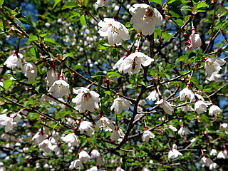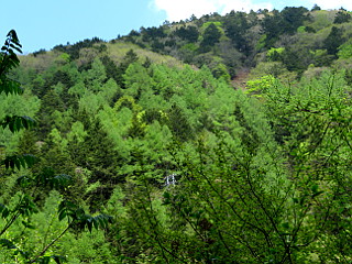 | 山行記 | ●クマガイソウが見られるということで期待していた倉見山だが、計画していた日の数日前にクマガイソウ保護地の公開を終了したという最新情報が入った。 ●メインの楽しみがだめなら、この山は来年のお楽しみとしてとっておくことにして、代わりの山を探すことにした。とは言っても、それが判ったのが前日だったので、結局同じ方面で過去に登ったことのある三ッ峠山へ行くことにした。 ●人気の山なので駐車場の混雑が心配だったが、思ったとおり駐車場は満車で、さらに次々と登山者の車が到着する状態だった。仕方がないので、駐車場の反対へ続く林道沿いを探してみると、意外に近いところに駐車スペースが見つかったのでそこに停めて出発する。 ●登山道は、頂上付近にある山荘の荷揚げのためか、車が通れるように広くなっている。車止めが無いので少し登ったところにも駐車スペースがあったが、そこにはまだ空きがあった。最初は舗装されている道もすぐに舗装が切れ、深い轍の道に変わる。 ●広い道だが、意外に傾斜がきついので、油断をするとペースを乱してしまう。沿道には、エイザンスミレやクルマバツクバネソウ、クリンユキフデ、ワチガイソウ、ミミガタテンナンショウなど、近場の山では見られない花が咲きとても新鮮に感じた。 ●しばらく登ると、ベンチのある広場に出るが、先行の登山者でベンチがいっぱいだったので、少し先の広場で休憩をし、また歩き始める。傾斜は徐々に緩やかになり、樹林帯から出るので明るくて気持ちがいい。 ●この辺りから目立ってくるマメザクラは満開で、枝にびっしりと咲いた小ぶりな白や薄ピンクの花が今までの疲れを癒してくれる。足下にはクサボケなども見ることができた。 ●少し進むと道は二分するが、その先でまた合流するようだ。ここは右へ進み、三ッ峠の名のとおり、3つの峰の1つの木無山を目指す。三ッ峠山荘の前を通り四季楽園の手前で河口湖方面へ続く道を少し進むと、木無山山頂に着く。 ●木無山山頂は、表示が無ければ通り過ぎてしまいそうなところで展望も無いが、少し先に行くとカヤトの向こうに美しい富士山を望むことができる。分岐と木無山山頂との間にも展望のいい岩場があり、そこからは富士山を始め御正体山や杓子山、鹿留山、三ッ峠山の最高点である開運山などを見ることができた。 ●先程の分岐まで戻ると、いよいよ三角点のある三ッ峠山最高峰の開運山を目指す。ピレーネ犬のいなくなった四季楽園の前を通って、鞍部から開運山の真新しい急な階段を登りきれば開運山山頂だ。 ●開運山山頂には有名な「三ッ峠」と書かれた大きな石碑があり、富士山の眺めはすこぶる良い。外にも、御坂の山々や天使山塊、箱根の山々、山頂付近に雪を残した南アルプスの3000m峰も確認することができた。 ●開運山から今度は深い轍の広い平坦な道を歩いて御巣鷹山を目指す。平坦な道から短い急坂を登り切ると御巣鷹山山頂だが、山頂は電波中継施設が大半を占拠し、山頂を示す案内は一切無い。帰りは来た道を戻る。 |