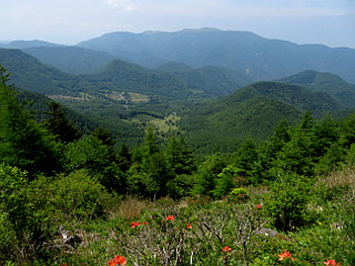| 山行記 | ●この時季の楽しみといえば、レンゲツツジ。ということで、久々に美ヶ原へ行くことにした。豊川を朝の5時に出発して8時過ぎに三城いこいの広場の駐車場に到着した。この日の天気は良さそうだが、梅雨時ということで、停まっている車は少ない。 ●まずは、駐車場からおよそ600m程舗装道を歩いてタデ河原コースの登山口まで行き、緩やかな谷沿いの道を登る。薄暗い樹林の中ではナガバノモミジイチゴやクルマムグラ、クリンユキフデなどの地味な花もよく目立つ。 ●道はしだいに傾斜を増し、やがて林道と出会う。林道を左へ下れば石切場跡へ続くが、王ヶ頭を目指すには林道を右へしばらく進む。ウマノアシガタやイワシモツケなどの咲く林道を10分程歩き、案内に従って王ヶ頭へ続く山道に入る。 ●山道は、急な斜面をジグザグに登るようになる。花も、クワガタソウやマイヅルソウなどが加わり賑やかになる。途中営業していない山小屋があり、その辺りからレンゲツツジが目立ってくるが、頭上ではまだヤマツツジも咲いていて華やかだ。 ●やがて、樹林も疎らになってくるので、隣の鉢伏山の姿も見えてくる。さらに登ると、王ヶ鼻への分岐に出るが、そこから上では、キバナノコマノツメやサラサドウダン、ハンショウヅルなどが咲く。 ●アルプス展望コースを横切る辺りからは、いよいよ王ヶ頭の鉄塔群が見えてくる。そこまで来れば王ヶ頭山頂まではあと僅か。王ヶ頭ホテルの左手の広場に山頂を示す立派な石碑が設置されている。 ●山頂からは、北アルプスなどの遠くの山は見えないが、隣の鉢伏山や王ヶ鼻、牛臥山、物見石山、茶臼山などの美ヶ原の山々を見ることができた。 ●山頂の展望を楽しんだ後、王ヶ頭ホテルで腹ごしらえをすることにした。王ヶ頭ホテルは登山者の外に、送迎バスで訪れた観光客もいて賑やかだった。 ●王ヶ頭ホテルでしばらく過ごした後、広い道を歩いて美しの塔を目指す。道は緩やかで、日差しを遮るものは無いが、さすがに高原の風が吹き心地よい。それでも、砂利の敷かれた道は登山靴では歩きにくく、アルプス展望コースを歩くべきだったようだ。 ●道沿いは、あまりこれといった花が無く、以前来た時にはもっといろいろな花が咲いていたような気がするが、やはり時季的なものなのだろうか。 ●下りに使う百曲りコースの分岐となる塩くれ場を通り越して美しの塔へ寄っていく。牧場には多くの牛が放牧されており、寝そべって草を反芻する牛と美しの塔は、美ヶ原のイメージそのものだ。 ●美しの塔で鐘を鳴らすと、塩くれ場まで戻り、百曲り方面へ進む。牛の脱走防止のフェンスの間の平坦な道を歩いていくと、トイレを過ぎアルプス展望コースと出会う。そこから道は緩やかに下り始めるが、板状節理の岩屑は不安定で、見た目よりも歩きにくく疲れる。 ●道はしだいにその名のとおりの九十九な急な下りに変わる、下るにつれ樹林も密になり、やがて広小場と称ばれる広場に出る。そこには休憩所があり、茶臼山方面への分岐にもなっている。休憩所で一休みするが、異常とも思える数の蝶が舞っていた。 ●休憩所からは、ほぼ平坦な苔の綺麗な沢沿いの道を歩いて三城いこいの広場駐車場を目指す。そこでは、ラショウモンカズラやオドリコソウなど、これまで見なかった花も見ることができた。 ●やがて舗装道に出ると、キャンプ場内の案内に従って下る。三城いこいの広場駐車場のすぐ上にあるセンターハウスでは、美味しい牛乳を頂いた。 |