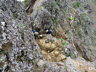 | 県界尾根上部も急峻な鎖場が続く | ||