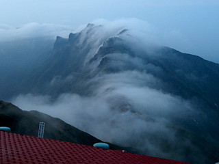 | 赤岳頂上山荘 | 夕方雲に包まれる横岳 | 朝日に染まる雲と蓼科山 |