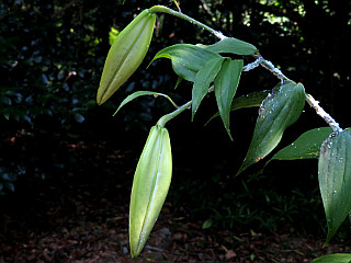 | 猛暑の中ウバユリが咲き始めヤマユリはまだ蕾の衣笠自然歩道 | ||