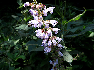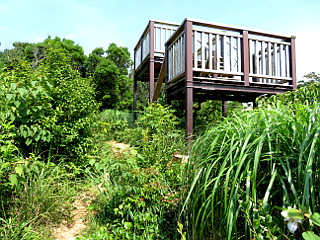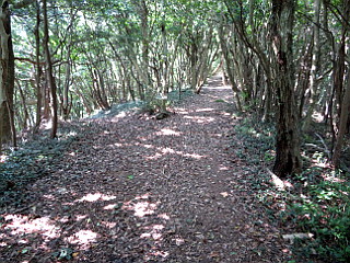 | 山行記 | ●前日、猛暑を避けて高原へ行ったが、それでもウバユリやヤマユリがどうなっているか確かめたくて、衣笠自然歩道を訪れた。滝頭山公園駐車場に着き、冷房の効いた車から降りると、既に高く上がった太陽が容赦なく照り付け、動いていなくても暑い。 ●駐車場から衣笠自然歩道入口まで歩き、そこからやや急な階段の坂を登るが、風も無く息苦しいほどの暑さで、既にこの時点でこの日は滝頭山から先へ行くのを止めることにした。 ●小衣笠を登り切ると林道終点に出るが、この辺りのヤマユリはまだ蕾だ。林道終点から始まる松尾岩コースの急坂を登り衣笠山山頂に着くが、暑いので展望台の上に上がる気もしない。 ●桟敷岩新道を下るが、滝頭山をパスした代わりに、コクラン平のコクランも見たかったので久しぶりに奇岩コースへ寄っていくことにした。あらためて見ると、コクラン平もそれ程コクランが群生しているわけではない。 ●元の道に戻って、バイパスから直登コース合流点まで下り、防火帯の広い道を進む。開けている分日陰も少なく暑い。目的のウバユリはまだ蕾のものが多いが、開花しているものもあり、もう一息といったところだ。 ●仁崎峠からは、そのまま舗装道を下れば滝頭公園駐車場まで戻ることができるが、この陽射しでは大変なので、滝頭山方面に少し登って滝頭不動方面へ下りることにした。 ●樹林帯の中は少し風が通り気持ちがよく、ムラサキニガナやオオニガナが咲いていた。滝頭不動に着くと、後は暑い舗装道を歩いて滝頭公園駐車場まで戻った。 |