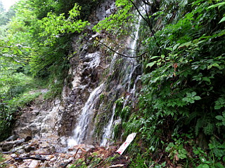 | 滝のように水が流れる登山道 | 大ブナの木 | 八木ヶ鼻方面を見下ろす |