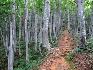 | 美しいブナ林 | 避難小屋は五合目になる | 尾根に出る |