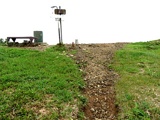| 鎖場 | 合目ごとの案内表示が導いてくれる | 粟ヶ岳山頂部が見えるがまだまだ遠い |