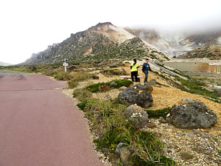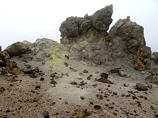 | 硫黄が噴き出した後 | ガスが濃くなり視界が悪くなる | ガスに包まれた恵山山頂 |