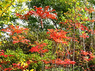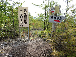 | ここの紅葉はいい感じ | 七合目 銚子口登山道は通行止め | 「山頂まで500m」の標識 |