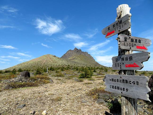 | 行程 | 六合目駐車場(8:32)・・・七合目(8:55)・・・「山頂まで500m」標識(9:13)・・・「山頂まで200m」標識(9:20)・・・渡島駒ヶ岳(9:29-57)・・・「山頂まで500m」標識(10:09)・・・六合目駐車場(10:38) | |