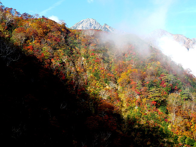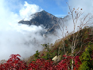 | 最盛期の最高の紅葉を楽しむことができた北アルプス尾根上のピーク | ||