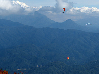 | 地蔵の頭を見上げる | 紅葉の地蔵の池付近 | パラグライダーと戸隠西岳、一夜山 |