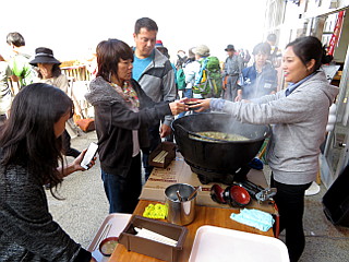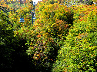 | きのこ汁の振る舞いを頂く | 紅葉の中を下るテレキャビン | アカミノイヌツゲ |