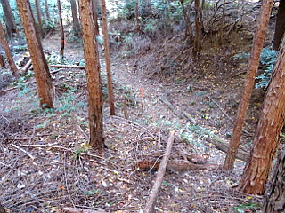 | わかりにくい分岐 | このテープが有力な手掛かり | 杣坂峠に出る |