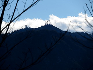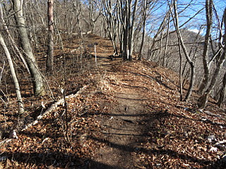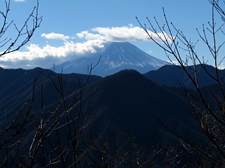| 山行記 | ●笹子雁ヶ腹摺山への一般的な登り口である笹子峠へ続く県道が、18日から冬季通行止めになるということなので、その前日であるこの日、笹子雁ヶ腹摺山へ行くことにした。 ●豊川を出る頃は曇り空だったが、東へ向かうにつれ雲が取れ、新東名や国道52号線からの富士山も大迫力で見ることができた。笹子峠に続く県道212号線は、今は長いトンネルで繋がる国道20号線の旧道なのだろう、くねくねとした険しい道路は、かつて甲州街道の難所であったことを忍ばせる。 ●狭いトンネルを抜けるとすぐに駐車スペースがあるので、そこに車を停めて出発だ。落葉した明るいジグザグの坂を登ると程無く尾根に出る。尾根は鞍部となっており、身を切るような冷たい風の通り道になっているのでとても寒い。 ●尾根からはロープや鎖のあるかなりの急坂で、尾根に着く前に2人の外人がこの急坂をハイテンションで下ってきた訳がわかった。このところ雨が降らず乾ききったザレた急坂は、ところどころロープや鎖の力を借りなければならなかった ●急坂を登り切ると一旦傾斜は緩み、冬枯れの気持ちのいい尾根道に変わるが、それも束の間で、再び急な坂を登ると尾根道と新道の分岐に出る。尾根道の方が起伏が激しそうで、第一風が強く寒そうなので、ここは新道を行くことにした。 ●新道は山腹に付けられた水平道で、やはり風が当たらないので日だまりのようで暖かい。すぐに送電線鉄塔が現れるが、鉄塔広場からはこれから向かう笹子雁ヶ腹摺山山頂部や枝が若干邪魔だが富士山の姿も見ることができた。 ●新道をさらに進むと、一か所富士山が木々に邪魔されることなくに見える場所があり、それを過ぎると程無く尾根道と合流し、そこから少し登ると大きな送電線鉄塔の立つ小ピークに着く。そこからも電線が些か邪魔だが富士山を見ることができた。 ●小ピークから少し下るとまた登りになるが、そこは既に笹子雁ヶ腹摺山本峰への登りだ。道はしだいに急になり、石の多い乾いてザレた道に難渋する。ひたすら続く急坂を登り切ると、意外に狭い笹子雁ヶ腹摺山頂に到着する。 ●山頂は木々が邪魔ですっきりとした展望は開けないが、南アルプス方面だけ木々の上から見ることができる。肝心の富士山だが、山頂のごく一部からは、かろうじてそれ程枝に邪魔されない富士の姿を見ることができた。 ●これまで風が強く、これでは山頂でゆっくり過ごすことなどできないと思っていたが、意外と風も弱く暖かいのでしばらく休憩をした後、来た道を戻った。 |
