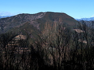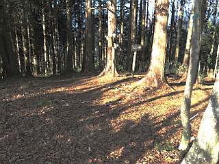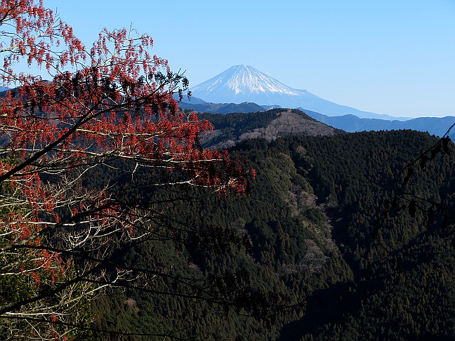 | 山行記 | ●新年早々、天気も良さそうなので、富士山が見たくなり、静岡の山へ行くことにした。とは言っても正月3日、高速道路は込み始める時なので、朝早く豊川を出ることにしたが、やはりその時間帯にしては車の量は多かった。 ●それでも、一歩高速道路を降りると、日曜日の早朝のように車が少なくなる。そして、登山口の蔵田観光駐車場が近付くにつれ出会う車も少なくなっていった。 ●やがて蔵田観光駐車場に着く。そこにはには既に数台の車が停まっていたが、いずれも登山目的の車ではなさそうで、人気もまったく無かった。 ●支度を済ませ、舗装道をそのまま歩いて行くと、正月らしく国旗が掲げられた鳥居が現れるが、これが鼻崎の大スギで、高根山へはそこから山側へ続く舗装道を登る。 ●静岡らしい茶畑の中の道を少し登ると、植林帯の中の薄暗い道に変わり、以降は急な斜面を大きくジグザグを切って高度を稼いでいく。途中展望の開けるところがあるが、そこから富士山は見ることができなかった。 ●送電線鉄塔の横を過ぎると、次の角にトイレのある広場があり、そこからは立派な富士山を望むことができるのだが、それに気づいたのは帰りに寄った時で、往きはそのまま通り過ぎてしまった。 ●トイレを過ぎるとすぐに芋穴所のマルカシへの舗装道を分け、さらに進むと高根白山神社に着く。神社の周りにはスギの巨木が多いが、高根白山神社のスギと呼ばれる巨木は確認することができなかった。 ●高根山山頂へは神社の少し手前から始まる山道を登る。道には木の階段が多く急な斜面をジグザグに登っていく。やがて広い道に出るが、そこは既に山頂の一角で、右に進むと高根白山神社奥宮、左へ進めば高根山山頂へ行くことができる。 ●まずは白山神社奥宮方面へ寄っていくことにする。すぐに小さな祠があるが、これが高根白山神社奥宮で、さらに続く道を行くと、山麓からも望まれる静岡県高根無線中継所の巨大な電波塔がある。 ●静岡県高根無線中継所からは折り返し、先程の分岐を越えて高根山山頂を目指す。植林の中を行くとNTT高根無線中継所があり、さらに進むと高根山の山頂に到着する。 ●高根山山頂は広場になっていて、南に視界が開け、駿河湾や名前はよくわからないがいろいろな低山を見ることができる。それでも、肝心な富士山は見ることができなかった。 ●高根山からは、家山や芋穴所のマルカシ方面へそのまま進む。すぐに分岐に出るが、ここで家山方面へ続く東海自然歩道から分かれて芋穴所のマルカシ方面へ下る。この分岐付近では、枝の間からかろうじて富士山を見ることができた。 ●分岐からしばらくやや急な坂を下ると、柵でガードされた、法面がコンクリートで固められた林道の上部に出るが、そこからは富士山を始めとする駿河湾などの展望が大きく開けた。 ●そのすぐ先が芋穴所のマルカシだ。静岡県指定天然記念物に指定されているだけあって、大きく、広角のレンズでも入りきらない程の大きさだ。 ●芋穴所のマルカシから急坂を下ると林道に出る。林道はいろいろな方向に分岐しているので、GPSで方向を確認して先程の芋穴所のマルカシ分岐まで戻る方向へ進む。すぐに先程展望の開けた場所の下部に出るが、そこからも、ススキや赤い木の実を前景にした富士山の展望が得られた。 ●後は林道をそのまま歩いて芋穴所のマルカシ分岐まで行くと、来た道を戻り、鼻崎の大スギの道路を挟んだ向こう側に続く舗装された林道を案内に従って進み、高尾山に向かう。 ●やや急な舗装道を少し歩くと案内があるのでそれに従って山道に入る。山道はかなり急で、ジグザグしながら一気に尾根に出る。尾根に出ても急坂は手を緩めず、それをひたすら登り続ける。それを登り切ると道は緩やかになり、小ピークを越えながら、林道を横切りながら気持ちよく歩いていく。 ●やがて、舗装道に出るが、しばらくその舗装道を歩くと、高尾山の案内があるので、それに従って山道に入り、緩やかに登っていくと、三角点のある高尾山山頂に到着だ。 ●高尾山山頂は北面が開けており、今登ってきた高根山がよく見えるが、ここからも富士山を見ることはできない。下山は舗装道を歩いて蔵田観光駐車場まで戻ることにした。単調な舗装道を下っていくと、途中で何組かの家族連れに出合ったが、この山はこの舗装道を登る人が多いのかもしれない。 |