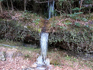 | 飯福田寺の駐車場と仁王門 | 立派な氷柱がこのところの寒さを物語る | 飯福田寺と入山受付 |