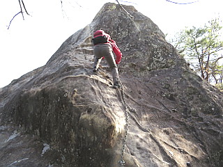 | 標高は低いが鎖で大岩を登降する険しい修験の山 | ||