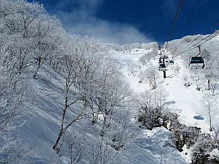 | 霧氷の中を進むテレキャビン | リフト終点から見える五竜菱 | リフト終点から地蔵の頭へ |