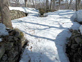 | 鳥居と雪の消えた部分のある急坂 | 落倉浅間山山頂と祠 | ショートカット道の林道合流点 |