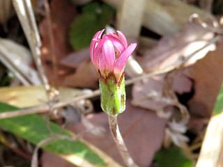 | 山行記 | ●春の花の様子を見に行こうと思ったが、世界の桜が植樹されている比丘尼城址はこの時期桜も見頃で、駐車場も満杯になるだろうと、少し早めに自宅を出て比丘尼駐車場を目指す。しかし、駐車場に着いた時には、着いたばかりの車が1台あるだけだった。 ●斜面に咲く世界の桜がいい感じで咲いている中を歩いていくと、足下にはフイリフモトスミレやタチツボスミレ、ショウジョウバカマなどが咲いている。これから主役になるはずのこの辺りのハルリンドウはまだ蕾のものが多い。 ●東屋から比丘尼城址、愛の鐘を経ておすすめの小径分岐に至るまでの間も、いろいろな色の桜が見頃を迎えており、おすすめの小径は一番いい時季なのかもしれない。 ●おすすめの小径から離れて金山へ向かう。樹林帯に入ると、ミヤマシキミや、アオキ、ヤブツバキ、キブシなどの春の花がいっぱいだ。林道を横切り、金山山頂への登りを登るが、芽生えたばかりのミヤマナルコユリの外これといった花は見られない。 ●金山山頂に着くと、いつものように県境稜線を歩き雨生山方面へ進む。県境稜線では、ヤマウグイスカグラやヤブツバキ、クロモジ、ヒサカキなどがよく咲き、アセビは終わりかけといった感じだった。 ●裸地に出ると、ハルリンドウがいたるところで咲き、それは、雨生山から再びおすすめの小径まで続いた。裸地から展望ピークを越え、雨生山へ至る道では、コアブラツツジが咲き始めており、シュンランやクサボケなども咲いていた。 ●雨生山からは、展望ピークまで戻り、雨生山反射板方面へ下る。桜が比丘尼城址あたりをほんのり薄ピンク色に染めているのがよく見える。日当たりがいいので足下にはハルリンドウがよく咲いていた。 ●雨生山反射板からは、新城方面下降点からの道と合流し、林道まで下る。この辺りは、毎年足の踏み場もないぐらいハルリンドウが咲くところだが、そうなるのはもう少し先のようだ。 ●林道に出ると、それをしばらく歩き、再びおすすめの小径と合流して西口へ下る。後は農道を歩いて比丘尼駐車場へ戻るが、法面や田の畦では、ノジスミレやセイヨウタンポポ、ヒメウズ、ホトケノザなどの春の花で溢れていた。 |