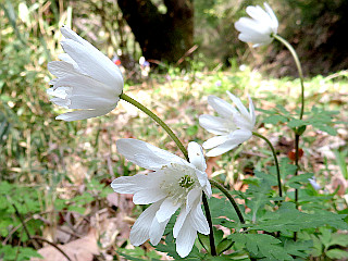 | 山行記 | ●前日、金山、雨生山へ行ったが、思った以上に多くの花を見ることができたので、それに味をしめて今度は五葉山へ行ってみることにした。7時台に五葉湖駐車場に着いたが、駐車場は思ったよりも多くの車が停まっていた。 ●このところ除草がされていなかった夕焼けの小径だが、よく草刈がされているようなので、そこから登ることにして、急なコンクリートの階段を登ると、奥の方まで綺麗に草刈りがされていた。 ●階段を登っても急な坂が続くが、それもすぐに終わり、アップダウンをしながら歩いていくと舗装道に出るが、そこには東屋と車止めがある。法面にはキクザキイチゲが咲いているが、朝早いのでどれも花を閉じたままだった。 ●車止めを越えてさらに舗装道を進むとすぐに未舗装となり、五葉城址へと緩やかに登っていく。道沿いにはヤブツバキやキブシ、アオキ、タチツボスミレ、ニオイタチツボスミレなどの春の花々が咲き、いい感じだ。 ●涼しの小径、展望の小径などの下降点を見ながら登っていくと、蛇穴方面への分岐が現れるが、ここはそのまま五葉城址方面へ登っていく。五葉の滝分岐を過ぎる辺りから傾斜も徐々に急になり、出丸への入口のすぐ先が五葉城址への入口になる。 ●その入口から樹脂製の階段が整備された道を登っていくと、大きく刈り払われて展望のいい五葉城址に到着する。この日、天気はいいが、霞んでいて富士山や南アルプスなどは見ることができなかった。 ●五葉城址で少しのんびりした後、五葉山へ向かう。五葉城址入口から林道を少し歩くと市境の稜線が見えてくるのでそれをアップダウンしながら進み、最後に短い急な道を登ると三角点のある五葉山に着く。 ●いつもならそのまま市境の急な尾根を下って遊歩道入口から五葉湖駐車場へ戻るのだが、往きに見たキクザキイチゲが気になったので、来た道を戻ることにした。しかし、キクザキイチゲは先程よりは開いていたものの、まだ完全には開いていなかった。 |