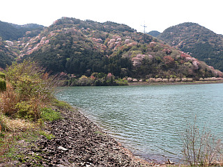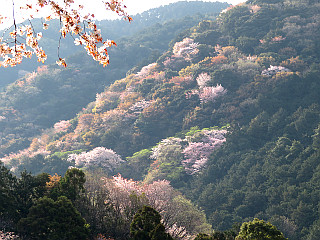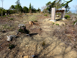 | 五葉城址 | 五葉山山頂 | 山肌を薄ピンク色に染めるヤマザクラ |