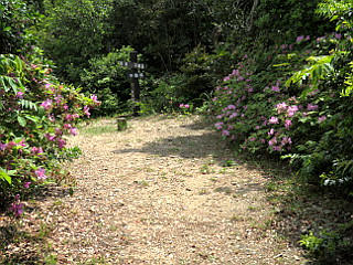 | 滝頭山山頂 | 新緑が眩しい荒れた林道 | モチツツジが咲く赤松山山頂 |