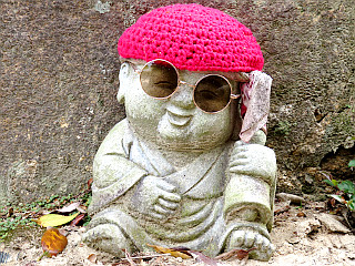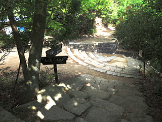 | 獅子岩駅からの道と合流する | 弥山本堂の建つ広場 | 可愛らしいお地蔵様が出迎えてくれる |