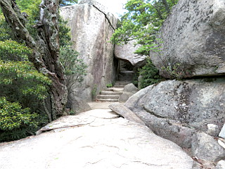 | 大岩を潜って山頂を目指す | 大岩が折り重なる弥山山頂 | 仁王門 |