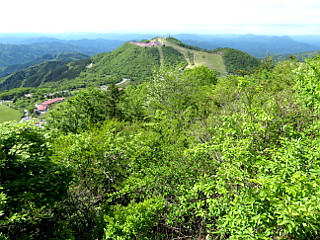 | 山頂展望台から見る萩太郎山と奥三河の山 | 山頂付近から見る萩太郎山の芝桜 | 長野県側分岐 |