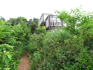 | 山行記 | ●ここは、先週訪れたばかりだが、まだ咲いていなかったカキランが気になっており、この日もう一度行ってみることにした。天気は、午前中は曇りの予報だが、いつ雨粒が落ちてきてもおかしくない程薄暗くじめじめしている。 ●いずれにしても午後からは雨なので早い時間に登ってしまおうと、豊川を早めに出たが、雨が降り出した時点で下山する覚悟で行ける所まで行くつもりだった。 ●まだパラパラとしか車の停まっていない滝頭公園駐車場に車を停め歩き始める。藤七原湿地入口から藤七原湿地に入るが、じめじめと蒸し暑く、「まむし注意」の看板もいつもよりリアルに感じる。 ●それでも、藤七原湿地にはノハナショウブがあちらこちらに咲き、カキランもいろいろなところでほぼ満開の状態で、前回訪れた時から一週間しか経っていないとは思えない程だ。 ●藤七原湿地からいつものように殿様新道を登って衣笠山山頂へ向かう。衣笠山への樹林帯の道は、特に薄暗く、ラジオを鳴らしていなければ薄気味悪い。衣笠山に着くと展望台に登ってみるが、当然この天気なので遠くは見ることができなかった。 ●衣笠山からは桟敷岩新道を下り直登コースと合流し防火帯の広い道を進む。ジョギングコースと合流し東屋を過ぎて仁崎峠に出るが、その間にはササユリはほとんど見られず、ウバユリの葉ばかりよく目立っていた。 ●仁崎峠まで来てもまだ雨は降り始めないので、予定どおり滝頭山へ向かうことにする。急な坂を登って滝頭山に着くと、長興寺自然歩道を進み、途中から荒れた林道へ下る。ここまで来れば多少雨が降り出したとしても予定どおり歩けそうだ。 ●三ツ俣から迷子尾根の頭を越え、不動岳からは防火帯を歩き赤松山を経て扇原に着く。ここからはいつも通りクチナシの道を下るが、途中にはササユリがあちらこちらで咲いていて、もともと自生しているものではないようだが、いい感じだ。 ●クチナシの道を下りきると、この天気にもかかわらず、スポーツを楽しむ人たちの声が聞こえる滝頭公園駐車場に戻り、豊川への帰路に着く。結局雨が降り始めたのは10時半過ぎで、早い時間に登り終えたのは正解だった。 |