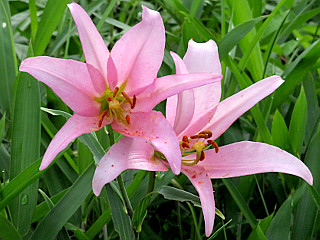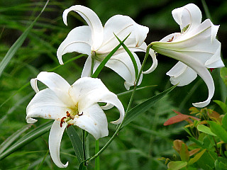 | ササユリ、カキラン、ノハナショウブなど 夏の花咲く比丘尼城址と県境稜線 | ||