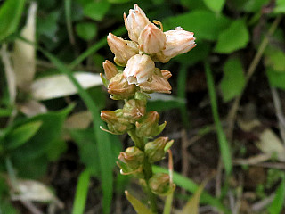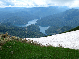| 山行記 | ●昨年登山口までのアプローチが工事中で登ることができなかった浅草岳を登りに新潟遠征に出かけた。当初は、金・土曜で行くつもりだったが、天候が思わしくないので、日・月曜で登ることにした。出発日は土曜日なので、午後4時頃豊川を出た。 ●料金を浮かすため、高速は飯田山本ICから豊田飯山ICまでの利用とし、最初登る予定だった八海山のロープウエイ山麓駅駐車場前で待ったが、開場時間頃に担当者が現れ、前日の雷の影響で、安全点検のためこの日は終日運行を見合わせるとのこと。 ●この山をあらためて2合目半から登るにしても、もうこの時間では遅いので、急遽、翌日に登る予定だった浅草岳を登ることにして、急いでその登山口へ向かった。登山口のネズモチ平の駐車場に着くが、この時間、広い駐車場はほぼ満車。なんとか遠くの方に空きを見つけて駐車することができた。 ●既に日が高くとても暑いが、支度をして歩き始める。ゲートを越えて広い林道を登っていくと広場が現れるが、ネズモチ平登山口は左へ続く山道の入口で、目立たないので見落すところだった。 ●登山口から山道になるが、このところの雨で濡れていて滑りやすく、乾燥しているときよりも数倍気を使う。最初は緩やかだった登りも次第に急になってくる。 ●滑りやすい登りはひたすら続くが、途中の目印が無いのでGPSを見ながら位置を確認しながら登るが、なかなか進んでいないのでがっかりの連続だ。それでも、背後には、まだ少し雪を残した守門岳の姿が見られるようになる。 ●やがて、樹木の背丈が低くなり、明るくなってくるが、直射日光が容赦なく照り付ける。そんな時、ヘリの音が聞こえ始めた。そのヘリは新潟県警のヘリで、山頂近くでホバーリングを始めた。 ●後で事情が分かったのだが、山頂直下の木道で若いカップルの登山者の男性が骨折しそれを救助するためだった。前岳の分岐を過ぎ、雪渓を登った先の木道の前には救助活動で足止めを余儀なくされた登山者で溢れていた。 ●自分もその人たちと一緒に、カップルが相次いで吊り上げられる救助活動の一部始終を見守りながら木道の開通を待つことになった。長い人は30分以上足止めされたということだった。 ●通行止めが解除されると、狭い木道は登山者で溢れ、山頂から下りてくる人たちも入り混じって、ヒメサユリを始めとする花の多いこの辺りの写真を撮るどころではなく、ところてんのように後続に追われるように山頂まで一気に歩くことになった。 ●浅草岳山頂には多くの人が休憩しており、このまま下っても足止めされた登山者とのすれ違いが大変そうなので、反対側の天狗の遊び場まで行ってみることにした。 ●この辺りもヒメサユリが多く、ハクサンシャクナゲやミヤマカラマツなどの高山植物を楽しみながら進むが、思ったより下る。それでも、草原の中に木道が見えるので、花に期待しながら下っていく。 ●木道が現れ、池塘や草原が広がり、麓の田子倉湖なども見えるので、景観は素晴らしいが、期待した花は今一つだ。それでも気持ちがいいので、木道に腰掛け、昼食を摂りながらしばらく休憩した後、再び浅草岳山頂まで戻る。 ●この時季、赤トンボが多く飛んでいるが、山頂は特に多く飛びむしろ異様な程だ。山頂を後にして、先程楽しむ頃ができなかった山頂直下の草原を巡る。草原にはヒメサユリやコバイケイソウ、トキソウなどが咲き、さすがは花の山だ。 ●山頂直下の草原を楽しんだ後、雪渓を歩いて下るが、滑りやすく不安定なので慎重に下り、前岳分岐から、今度は桜ゾネ登山口方面へ下る。歩き始めはヒメサユリやイワカガミ、トキソウなどが咲く緩やかな木道を下る。 ●その後、少し登り返せば嘉平与ボッチ、ここにも三角点がある。嘉平与ボッチからはほぼ下る一方で、緩急しながら単調な尾根道を下る。道はやはりよく濡れているので登りよりもさらに慎重に下る。 ●登山道からは、ネズモチ平駐車場が見えるので、なかなか高度が下がらないので心配になるが、ひたすら下っていくと、小広場に出る。そこには鐘と祠があるので、鐘を一鳴らしして下ると桜ゾネ登山口に到着する。 ●桜ゾネ登山口からは林道を歩いてネズモチ平駐車場へ向けて歩く。林道は日陰が無く暑そうなので、日傘代わりにいつもザックに付けてある折り畳み傘を出したが、意外と暑くなく、あまり出番は無かった。 ●林道沿いにはヤグルマソウがいたるところで咲き、外にもミヤマツボスミレやサンカヨウ、ミヤマカラマツ、ホウチャクソウなど、ここへきても花の山の面目を保っていた。 ●意外に下る一部舗装された林道を下ること約40分、ネズモチ平登山口の広場を過ぎてネズモチ平駐車場に到着するが、朝満杯だった駐車場の車は半分以下になっており、続々と下山してくる登山者が次々と帰路に着いていた。 |