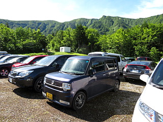 | ネズモチ平駐車場 | ネズモチ平登山口の広場 | 守門岳が良く見える |