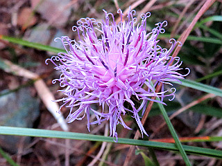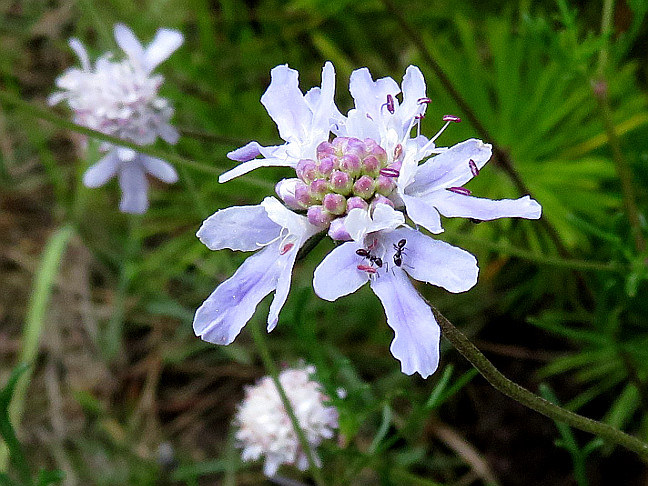 | 山行記 | ●9月も中旬を過ぎ、秋の花の様子を見に、久しぶりに比丘尼と県境稜線を訪れてみることにした。この日は、いつもと比べると少し出発が遅れたので、駐車場下には数台の車が停まっていたが、上の駐車場には1台の車も停まっていなかった。 ●支度をして歩き始めるが、この日は気温も湿度も高く、しかも風が無いので蒸し暑く、歩き始めから玉のような汗が出る。花は、ツリガネニンジンがぽつぽつと咲く外、今にも咲きそうなオケラの蕾や、終わりかけのツルボなどが咲いていた。 ●東屋を過ぎると、オミナエシやアキカラマツ、キハギ、ナガバノコウヤボウキが咲いており、オケラも咲いているものが見られた。比丘尼城址や愛の鐘辺りではヤマハギが道に覆い被さるが、咲いているものはまだ少なかった。 ●おすすめの小径から離れて金山への登りに取り付くが、この辺りは花は見られない。金山山頂からは、県境稜線を歩くが、先の台風の影響か、倒木や落枝などが多く、道自体わかりにくくなっている箇所がある。 ●裸地まで来ると、ミカワマツムシソウとツリガネニンジンが各所で咲き、ホソバアレノノギクも見ることができた。裸地を過ぎて雨生山に向かう。ツルボやナガバノコウヤボウキ、シュロソウなどが咲いていた。 ●雨生山からは、一旦展望ピークまで戻り雨生山反射経由で新城方面へ下る。再び林道に出るとしばらく林道を歩くが、ハイメドハギやネコハギなどが咲く中、彼岸らしくヒガンバナも咲いており、昨年初めて見たミヤマウズラも確認することができた。 ●林道から再びおすすめの小径戻ると、花の写真を撮る人が見られるようになる。西登山口まで下ると、農道を歩いて比丘尼駐車場まで歩いて戻るが、スズカアザミやコバギボウシなど、いつものように、この間も花が豊富だった。 |