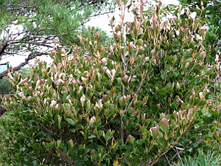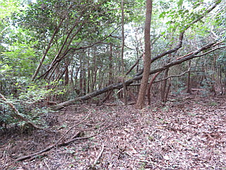 | 大きな落枝が道を塞ぐ | 倒木が目立つ | 塩害で傷んだコアブラツツジの葉 |