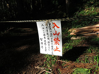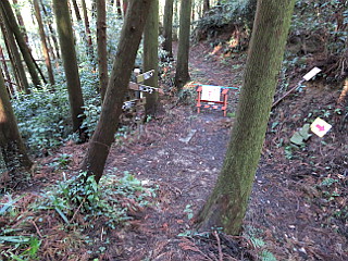 | 工事中の日吉神社の先から入山禁止 | 入山禁止の張り紙 | 舗装道を歩く |