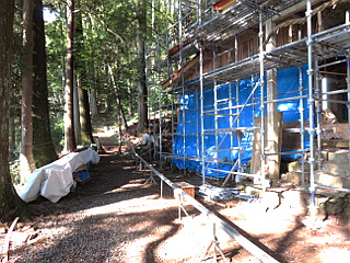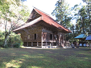 | スカイペンションどうだん | 山頂・智満寺分岐で山頂方面は入山禁止 | 茅葺の立派な智満寺 |
