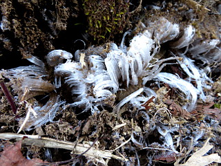 | 八紘沢の頭 | 大きな霜柱が立つ | 十枚山などの安部川流域の山々を望む |