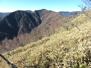 | 大谷嶺や山伏が見える | 山頂直下のササの斜面 | 八紘嶺山頂 |