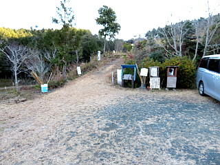 | 比丘尼駐車場とおすすめの小径入口 | 金山山頂 | 金山山頂から見る吉祥山の山頂部 |