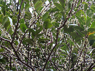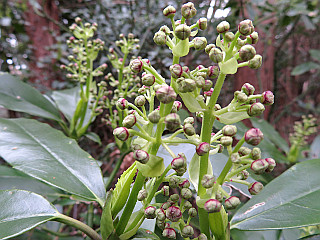 | ヤマウグイスカグラ | 鈴なりのヒサカキ | 咲く寸前のアオキ |