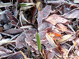 | 冷え込んだ朝 霜の降りる富士山展望の稜線で早春の花を探す | ||