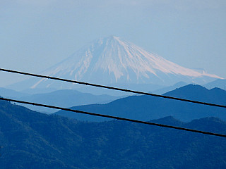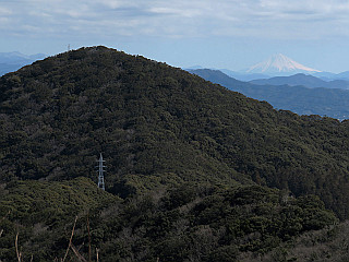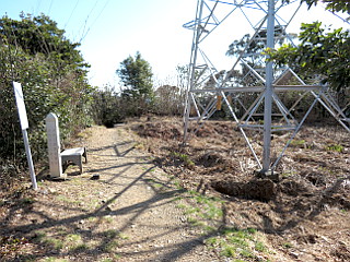 | 普門寺峠 | 一等三角点のある広い神石山山頂 | 送電線が邪魔な神石山山頂から見る富士山 |