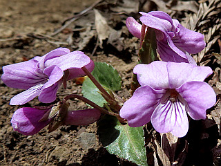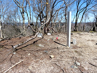 | 山行記 | ●この山は京都府の最高峰、とは言っても1000mに満たない山で、すぐ東に連なる比良山地の山々と比べると大分低いのであまり目立たない。それでも、今回は、先日開通した新名神高速道路の新区間を走ってみたかったので訪れることにした。 ●登山口は東側の平バス停横の駐車場なのだが、大きく「駐車禁止」の張り紙があり、少し戸惑うが、その下に、駐車する人は駐車料金を納めてください。とあるので、張り紙の裏にある缶に料金を投入して歩き始める。 ●ところが、ここが皆子山の登山口であることには間違いなさそうなのだが、皆子山登山口という案内が一切無い。あらかじめ用意した山行記録を頼りに、車が速度を上げて行き来する車道を少し戻てみるが、案内はどこにも無い。 ●結局いろいろと探した挙句、山行記録のとおりに橋を渡ってお寺の方へ進んでみるが、案内はどこにも無く、不安はあったが、とにかくそのよく踏まれた道を進んでみることにした。道はすぐに急な登りに変わり、それが延々と続く。 ●久しぶりにまとまった急登を登るので、なかなか大変だが、我慢して登っていくと、シハイスミレが見られるようになり、やがて急登も一段落すると、葉を落とした木々に囲まれた明るい気持ちのいい道に変わる。 ●木々の間からは、琵琶湖や蓬莱山などの比良山地の山並みなどが見えるようになり、シハイスミレの数も増えてくる。以降はいくつかの小ピークを越えながら少しずつ高度を上げ、やがて山頂の一画である分岐に出る。 ●後は平坦な明るい道を進めば京都府の最高峰である皆子山の山頂に到着する。山頂には三角点があり、各地の山の会が設置した山名案内があり賑やかだが、登山口からここまで2か所「平」と書かれた木の札を見ただけで、外はテープがあるだけだった。 ●皆子山山頂からは比良山地の武奈ヶ岳や蓬莱山、比叡山、琵琶湖などを見ることができた。また、山頂直下の斜面にはまだ雪が残っており、さすがは都道府県最高峰だ。 ●山頂でしばらく時間を過ごした後下山を開始する。帰りは、別の寺谷コースを下りようと、分岐から下ってみたが、すぐに道が不明瞭になりコースが補足できなくなったので、分岐まで戻り来た道を下った。 |