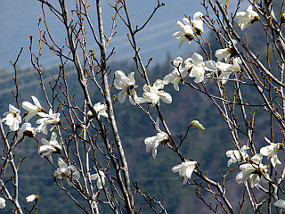 | 山行記 | ●オキナグサを見たくて計画をしたものの、寒の戻りの影響で春の花の開花が遅れ始めたので、どうかと思いながらも出かけることにした。中央道の沿線はサクラやミツバツツジなどがちょうどいい具合に咲いており、ハナモモもいい感じだった。 ●朝9時過ぎに着いた登山口の山ノ神自然園の駐車場は既に満杯状態だったが、空きスペースを見つけて何とか駐車することができた。駐車場の周りではスミレの仲間やカタクリ、ニリンソウ、キブシなどが咲きいい感じだ。 ●早速霧訪山に向けて出発するが、この辺りは自然園になっていて、ミズバショウが咲いているので、まずはそれを見てからの出発になった。しばらくは舗装道を歩き、雄床山神社、たまらずの池などを見ながら進む。 ●たまらずの池を過ぎると舗装道から外れ、少し進むと霧訪山登山口の標柱が現れ、本格的な山道が始まる。いきなりの急坂だが我慢して登ると34番鉄塔が現れ、周囲も明るくなる。タムシバの花が高いところで咲き、山肌を白く染めているのが見える。 ●ここで傾斜は若干緩くなり、イワウチワなどを見ながらさらに登ると「ブナの分岐」に出るが、ここは霧訪山方面と大芝山方面との分岐になり、まずは霧訪山方面へ進む。 ●すぐに男坂と女坂との分岐が現れるので、カタクリが多いという女坂を登ることにする。しかし、カタクリの方は葉は沢山確認できるものの、咲いているものがあまり無く、やはり開花は遅れているようだ。 ●やがて男坂と合流すると、少し登り、それを登り切ったところが山頂かと思いきや、山頂はもう少し先で、最後の坂を登れば霧訪山山頂だ。山頂には三角点や山名展望板、ベンチなどが設置され、先着の登山客で賑わっていた。 ●山頂からは360度の展望が得られるとのことだが、黄砂や水蒸気のせいなのか、霞と雲で遠くははっきりと見えないものの、雪を抱いた北アルプスの一部や八ヶ岳などは確認することができた。また、山頂のオキナグサは予想通りまだ咲き始めだった。 ●霧訪山山頂で少し過ごし過ごした後、大芝山へ向かう。ブナの分岐を直進し、なだらかで明るい尾根道を進むとカタクリの葉が多く見られるものの花を咲かせているのはわずかで残念だが、明るくて気後のいい尾根歩きだ。 ●道が少し登り始めると送電線鉄塔のある「たきあらしの峰」に着く。以降は再び気持ちのいい尾根歩きで、カタクリもよく咲いており、希少種のキバナノアマナも多く見ることができた。 ●明るい尾根道を進むと、それほど大きく登ることも無く大芝山山頂に到着する。山頂は明るいが、木々に囲まれ展望は良くない。大芝山山頂から大芝山の肩にかけてもカタクリやスミレの仲間を楽しむことができた。 ●大芝山の肩から、送電線鉄塔を2本見送ると洞ノ峰に着くが、そこから先、右に下るのが正解なのだが、なかなか信じられず、いろいろと迷った末、案内どおりに下ることにした。 ●少し下ったところにニホンカモシカが現れ、逃げないのでしっかりとカメラに収めることができた。迂回道は送電線鉄塔の手前で折り返し、26番鉄塔の辺りで先程下ってきた尾根に合流する。 ●26番鉄塔を過ぎると道は下り始め、25番鉄塔を過ぎるとさらに大きく下り始める。植林帯の中のジグザクの急坂はしばらく続き、それが緩やかになってくると林道に出る。 ●林道は山ノ神神社の前を通って舗装道に出るので、後はそれを歩いて車を置いた山ノ神自然園駐車場へ戻った。下山後の温泉は高遠の桜を見ながら、さくらの湯で汗を流して帰路に着いた。 |