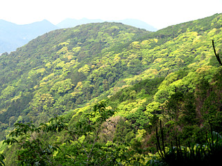 | 仁崎峠 | 滝頭山山頂 | 西の覗きから見る新緑の山肌 |