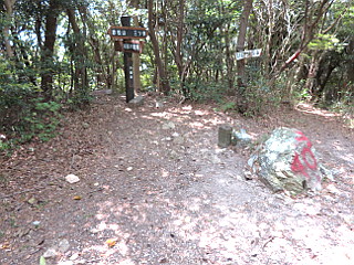 | 衣笠山山頂 | 桟敷岩新道、直登コース合流点 | 見事に毛虫に食べられたウラシマソウ |