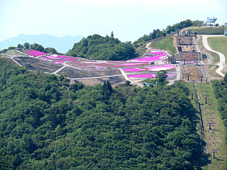 | 長野県側の鉄製展望台跡 | 茶臼山山頂 | 茶臼山山頂から見る芝桜祭り中の萩太郎山 |