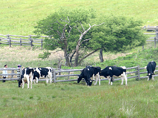 | 高ボッチ山頂 | 高ボッチ山頂から見る諏訪湖方面 | 高ボッチ牧場の牛 |